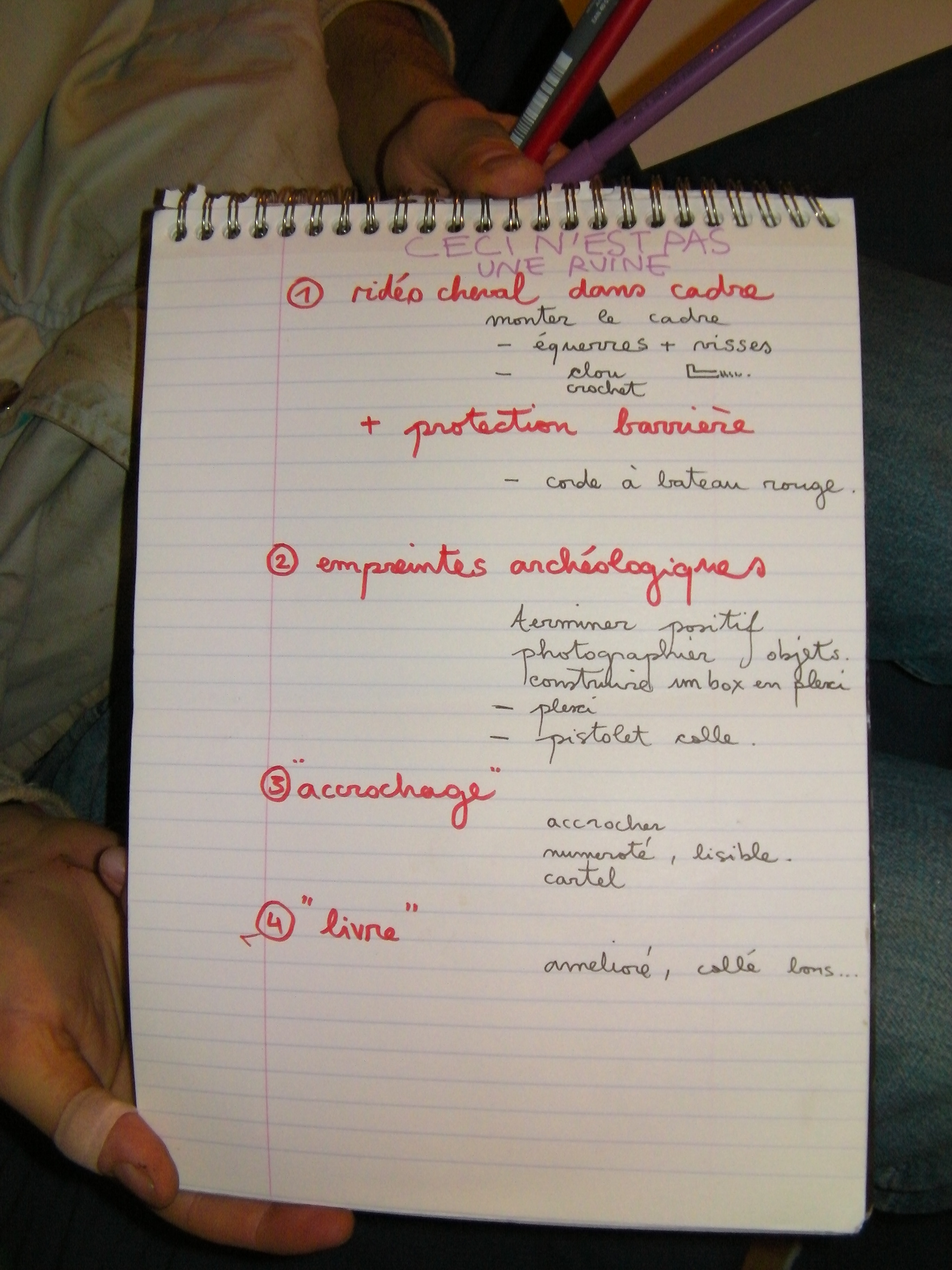 Conclusion, comme un récapitulatif de toute la "fausse" exposition. Création d'un objet consultable sur socle blanc. (éléments de la ruine). à l'entrée des expos.