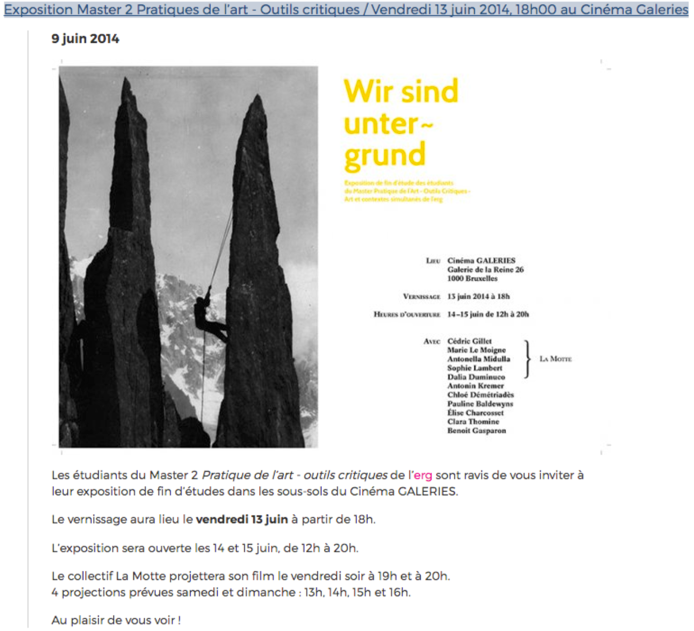 Bruxelles - exposition - projection au cinéma Arenberg -